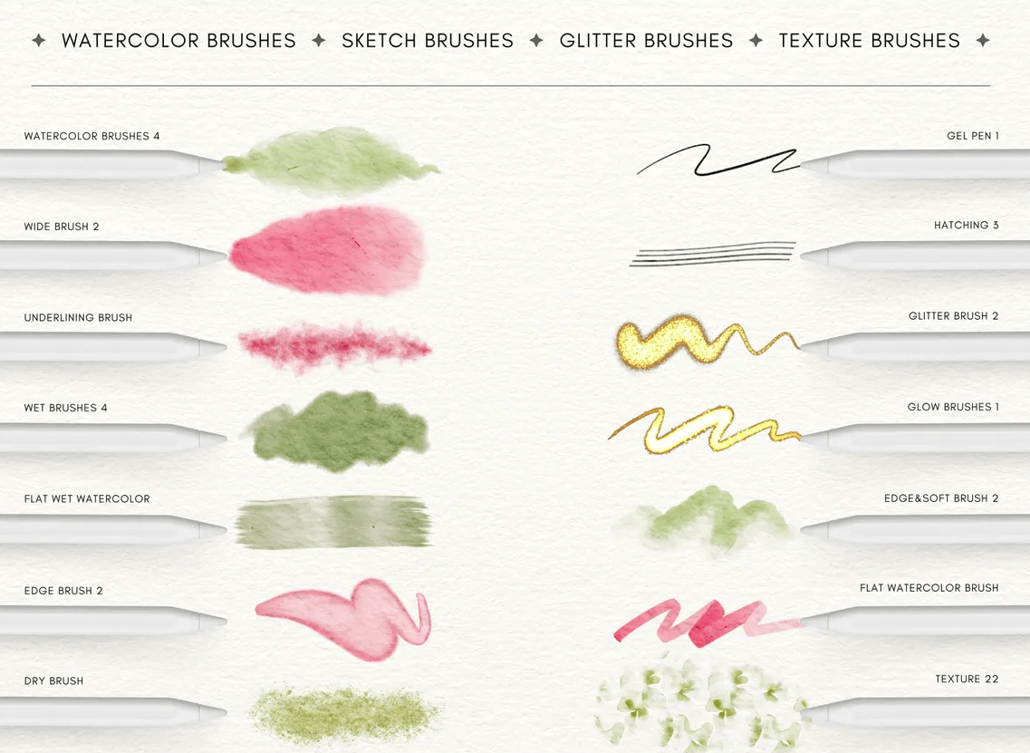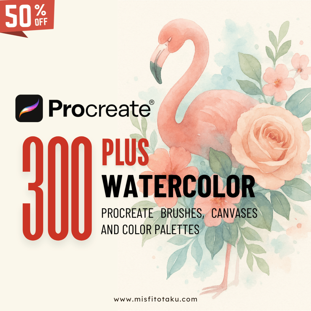 Procreate Watercolor Bundle 300 Brushes & Stamps, Sketches and more only in $10