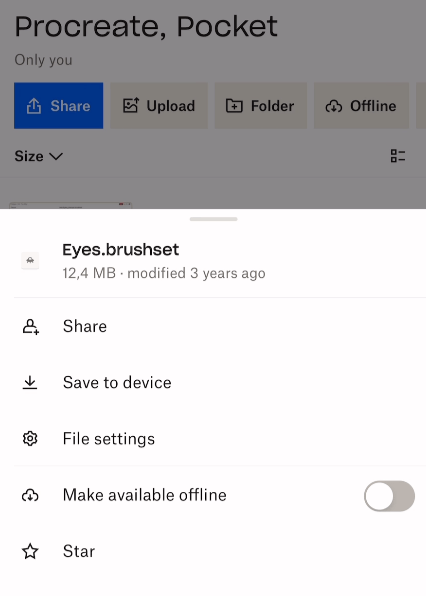 After Downloading the brushes pack click on Save to Device and choose Procreate app.